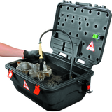 Lightweight, corrosion-proof, insulated, safe, cleaner and cost-effective, this is a better way to clean your parts. This light and portable washer is UL and SAA certified. It is recommended that you use it with a water-based solvent.
