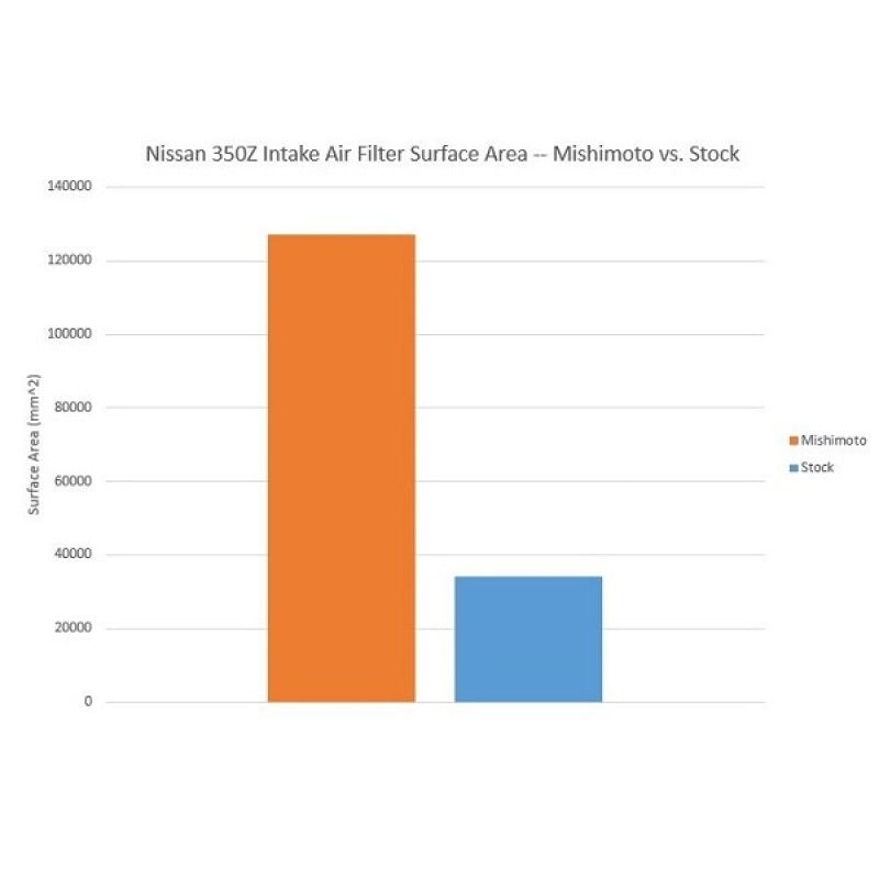 Add some horsepower and sound to your Nissan 350Z's VQ35DE engine with the new Mishimoto Performance Air Intake. This kit is engineered specifically for your 2003--2006 Nissan 350Z and includes everything needed to replace the restrictive stock airbox. This dyno-proven air intake provides maximum gains of 10 hp & 13 tq over the stock intake while maintaining safe air/fuel ratios. This kit is simple to install, making it perfect for some extra punch on the street or autocross course. The Mishimoto Nissan 350Z Performance Air Intake includes everything needed for installation, installs in under one hour, and works perfectly with the stock tune. The stock MAF housing is retained which translates into a smooth power band with safe air / fuel ratios. To reduce air intake temperatures (IATs), a powder-coated heat shield is placed between the air filter and hot exhaust manifold, significantly reducing heat-soak. The heatshield bolts right up to the stock inlet duct on the front support to draw in the maximum amount of outside air into the filter. The heatshield also comes fully assembled with protective rubber strips to fully seal it from hot engine bay heat and prevent any vibrations during operation. The Mishimoto high-flow air filter features an integrated venturi and center inlet stack for smooth, high velocity airflow. The large filter provides 271% greater surface area over stock and provides proper filtration of dirt and debris. The included Mishimoto oiled air filter is completely serviceable, allowing for a lifetime of reliable use. Along with an upgrade in power, this intake also provides an aggressive and deep-sounding intake tone that is a huge improvement over the stock intake. The Mishimoto Nissan 350Z Performance Air Intake is designed in Delaware, USA and includes the Mishimoto Lifetime Warranty.