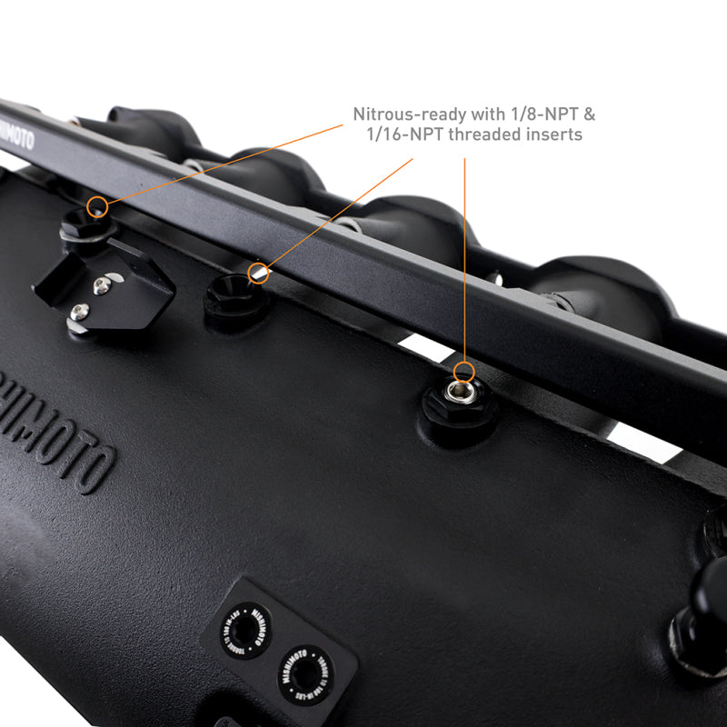 ----Insane power levels require equally insane amounts of fuel, so we've added provisions for port fuel injection, including a billet fuel rail and anodized aluminum injector blanks to cap the injector ports when not in use. Our precision-machined injector ports feature optimized geometry for the perfect mixing of air and fuel, with no drilling required. The included PTFE -AN fuel lines and fittings are suitable for ethanol and tee into the stock fuel lines. ----If cooling, flow, and reliability weren't enough, we also designed our charge air cooler to fit like stock. This kit includes brackets to keep your wiring tidy, a mount to fit the stock engine cover, and custom EVAP lines for a seamless installation. A convenient cutout in the plenum allows easy access to the oil filter without affecting flow. Like all Mishimoto products, this performance charge air cooler for the 2021+ BMW G80 M3 is backed by our Mishimoto Lifetime Warranty for a lifetime of exceptional performance. If you want the ultimate upgrade to squeeze serious power from your S58 engine, this Mishimoto charge air cooler manifold is for you.