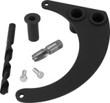 Drilling fixture used to locate holes for drilling and tapping of transmission case on 2007-2016 touring models when installing a T-Series engine with oil line adapter kit 310-0435. Kit comes complete with drilling fixture, drill bushing, drill and tap.